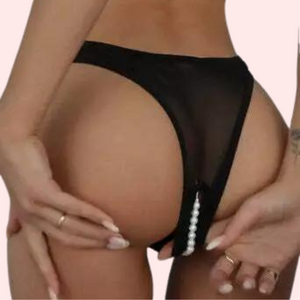 A chic, crotchless string with elegant strap detailing, made from premium silk to add a sophisticated edge to your lingerie collection.